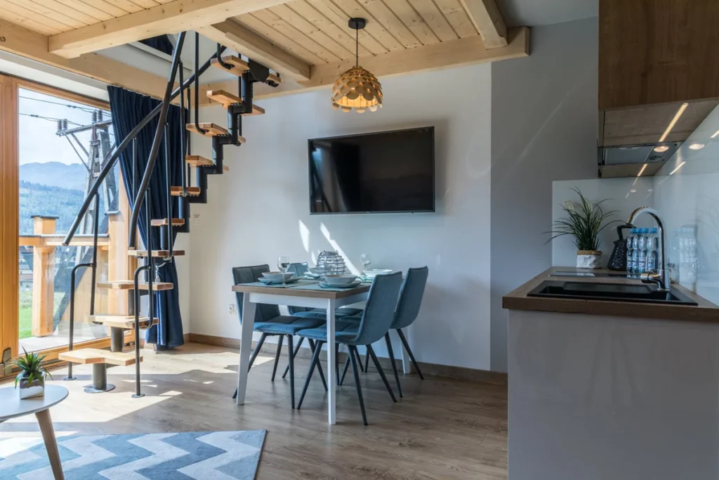 ZarezerwujLubisz oryginalny design? Wypocznij w funkcjonalnym studio, z antresolą i ciesz się przytulnym wnętrzem, podczas pobytu w górach. Otwarta przestrzeń dzienna, z aneksem kuchennym sprzyja relaksowi, a sypialnia na antresoli, zapewnia intymne miejsce do snu. Znajdziesz w nim: wysokiej klasy sprzęt AGD, balkon, z widokiem na teren zielony, łazienkę z prysznicem, mięciutkimi ręcznikami i suszarką.